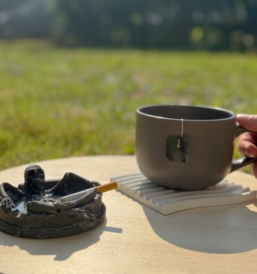 Tutte le nostre creazioni nascono da una base di puro calcestruzzo bianco, una tela neutra che esalta la geometria e l'essenzialità del design. Per rispondere a diverse esigenze estetiche, offriamo la possibilità di personalizzare ogni oggetto con l'accurata aggiunta di pigmenti selezionati nelle tonalità dell'azzurro, del nero e del rosso terracotta.